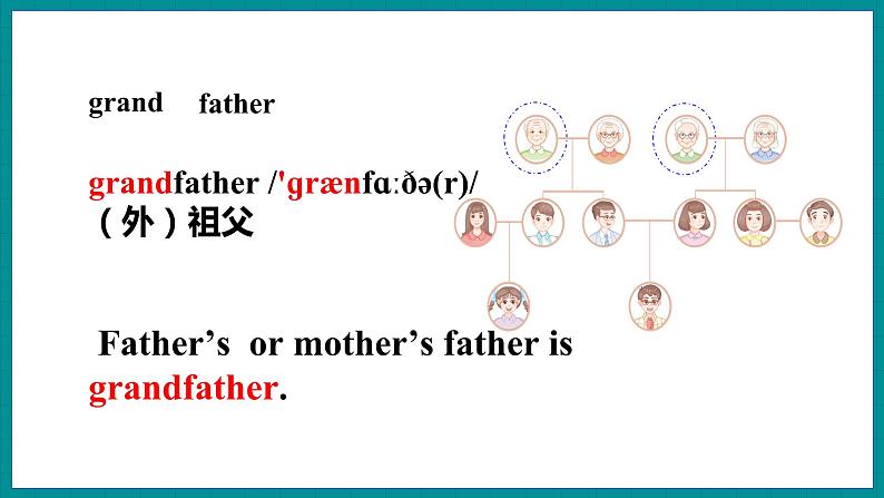 grandfather /'ɡrænfɑːðə(r)/ (外)祖父
