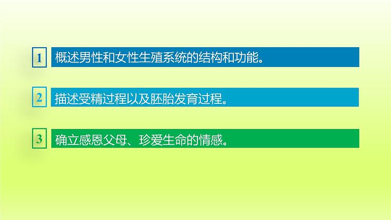 初中生物人教版 (新课标)七年级下册第二节 人的生殖作业ppt课件: 这是一份初中生物人教版 (新课标)七年级下册<a href="/sw/tb_c5358_t3/?tag_id=26" target="_blank">第二节 人的生殖作业ppt课件</a>,共19页。PPT课件主要包含了生殖过程等内容,欢迎下载使用。