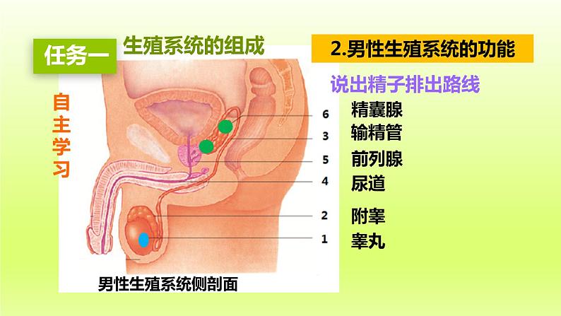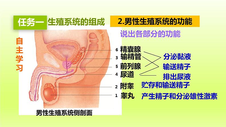 初中生物人教版 (新课标)七年级下册第二节 人的生殖作业ppt课件: 这是一份初中生物人教版 (新课标)七年级下册<a href="/sw/tb_c5358_t3/?tag_id=26" target="_blank">第二节 人的生殖作业ppt课件</a>,共25页。PPT课件主要包含了雄性激素,输精管,卵细胞,雌性激素,输卵管,受精卵,子宫内膜,分裂和分化,发育成熟等内容,欢迎下载使用。