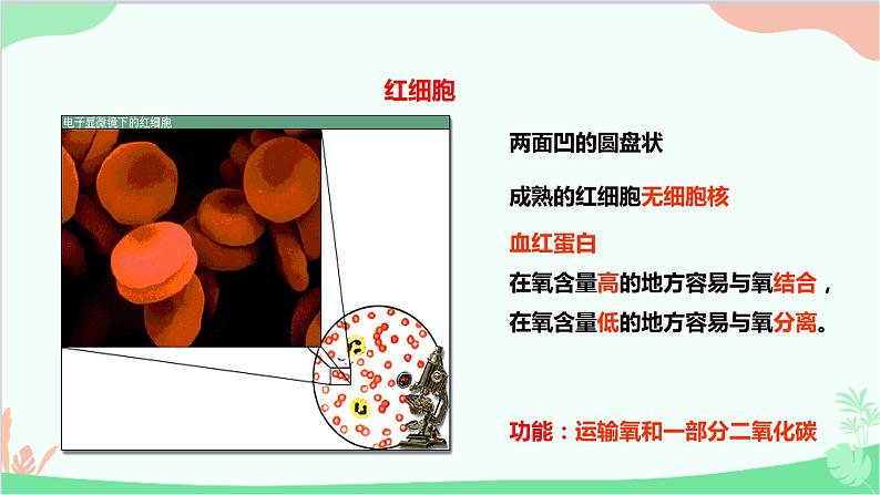 这是一份初中生物人教版 (新课标)七年级下册第一节 流动的组织──血液教学演示ppt课件,共16页。PPT课件主要包含了学习目标,重难点,一引入新课,教学过程,二讲授新课,血液成分的功能,血细胞等内容,欢迎下载使用。