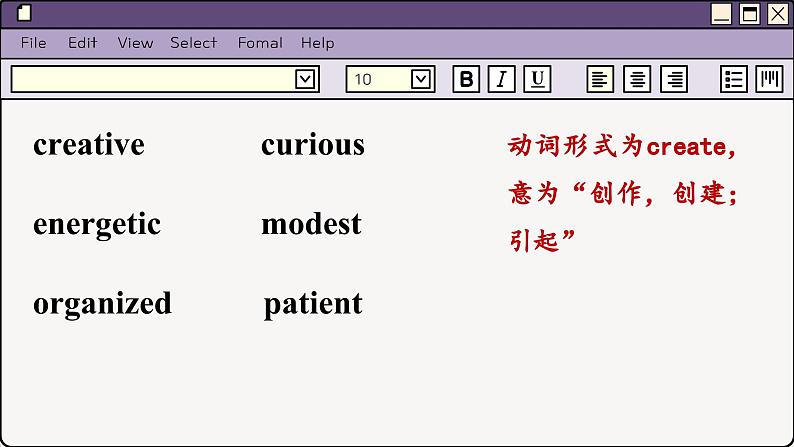 creative curius energetic mdest rganized patient 1. Suzy is well ___________. She keeps all her things in gd rder. 2. Daniel is very clever, but he is ___________and never shws ff.