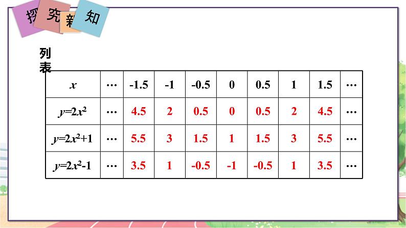 (2)抛物线 y=2x2+1,y=2x2-1与 y=2x2之间有什么关系?