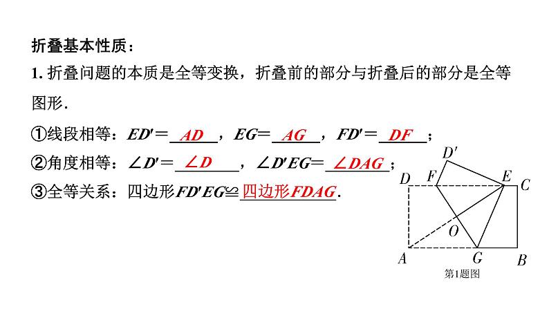 展开折叠基本性质:1. 折叠问题的本质是全等变换,折叠前的部分与折叠后的部分是全等图形.