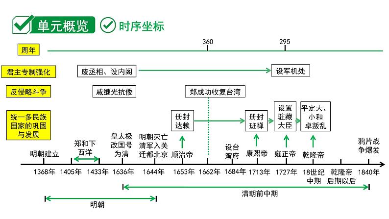 这是一份2024海南中考历史二轮中考题型研究 中国古代史 明清时期:统一多民族国家的巩固与发展(课件),共45页。PPT课件主要包含了世纪中期,乾隆帝后期以后,顺治帝,皇太极改国号为清,明朝建立,设内阁,戚继光抗倭,康熙帝,雍正帝,乾隆帝等内容,欢迎下载使用。
