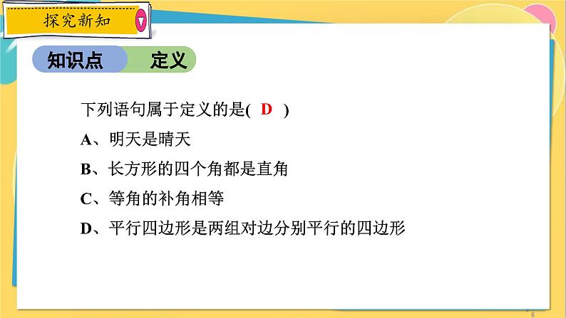 八年级上册1.2 定义与命题多媒体教学ppt课件: 这是一份八年级上册1.2 定义与命题多媒体教学ppt课件,共18页。PPT课件主要包含了日常生活,考考你,辨一辨等内容,欢迎下载使用。