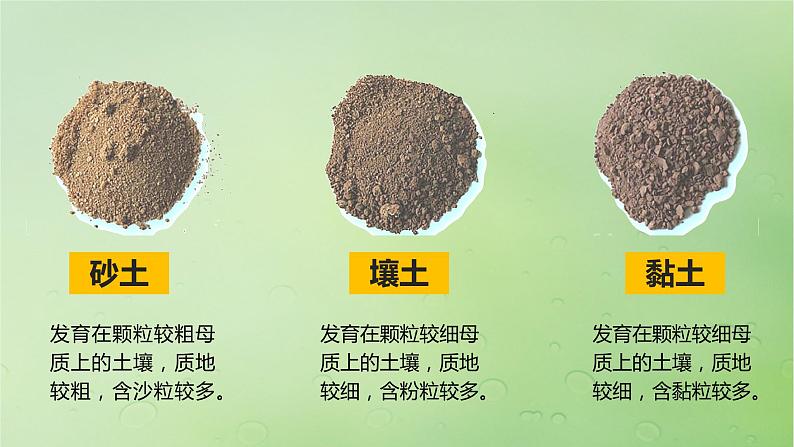 发育在颗粒较细母质上的土壤,质地较细,含黏粒较多。