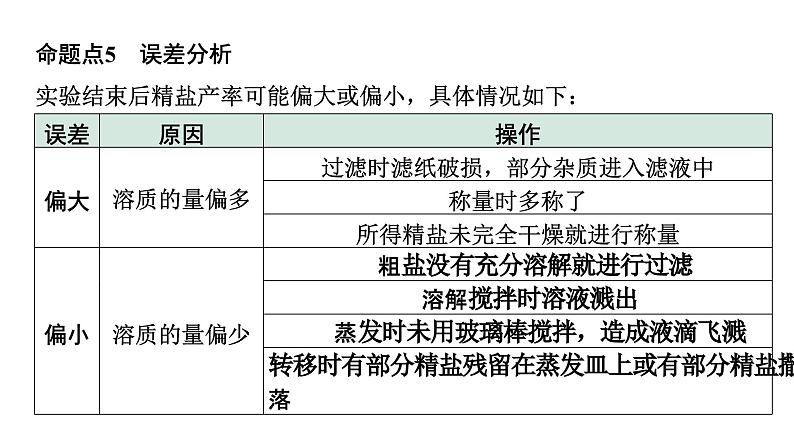 命题点5 误差分析实验结束后精盐产率可能偏大或偏小,具体情况如下: