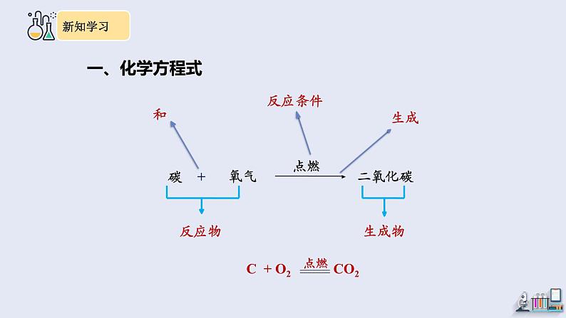 1.化学方程式概念:用化学式来表示化学反应的式子。