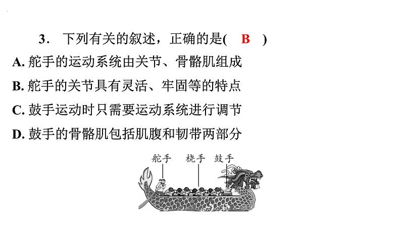 5. 从运动系统的结构分析,在“赛龙舟”运动中起支点作用