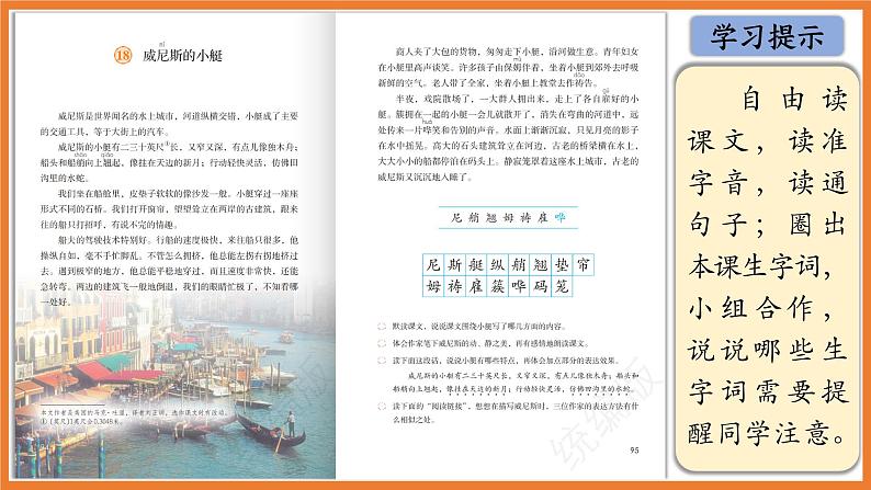 人教部编版五年级下册威尼斯的小艇背景图ppt课件