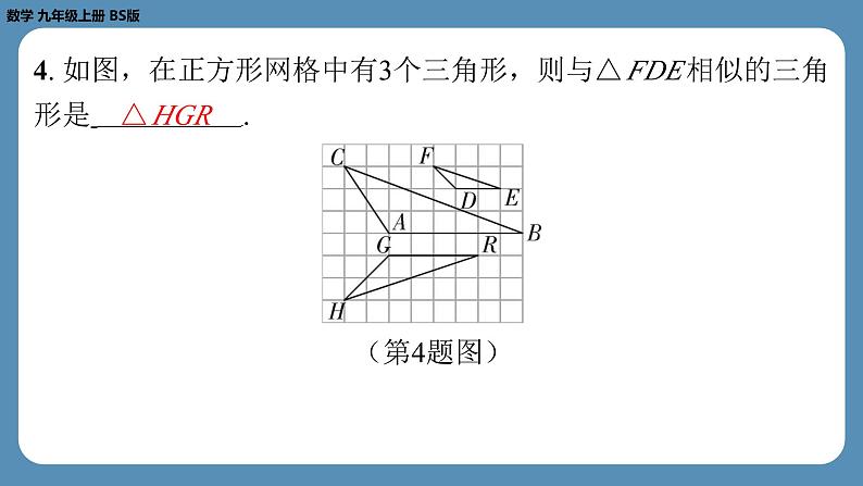 4. 如图,在正方形网格中有3个三角形,则与△ FDE 相似的三角