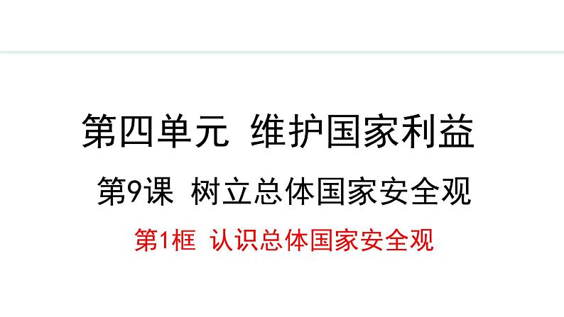 这是一份八年级上册认识总体国家安全观说课课件ppt,共30页。PPT课件主要包含了树立总体国家安全观,国家利益之上,第八课,第九课,第四单元维护国家利益,建设美好祖国,第十课,整体感知,认识总体国家安全观,坚持总体国家安全观等内容,欢迎下载使用。