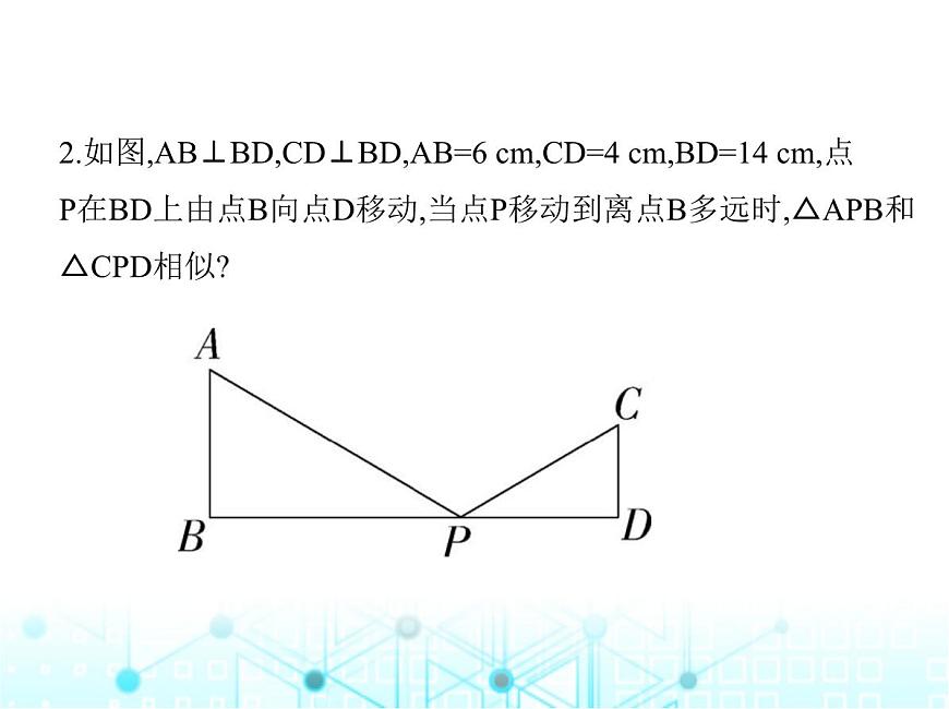 2.如图,AB⊥BD,CD⊥BD,AB=6 cm,CD=4 cm,BD=14 cm,点