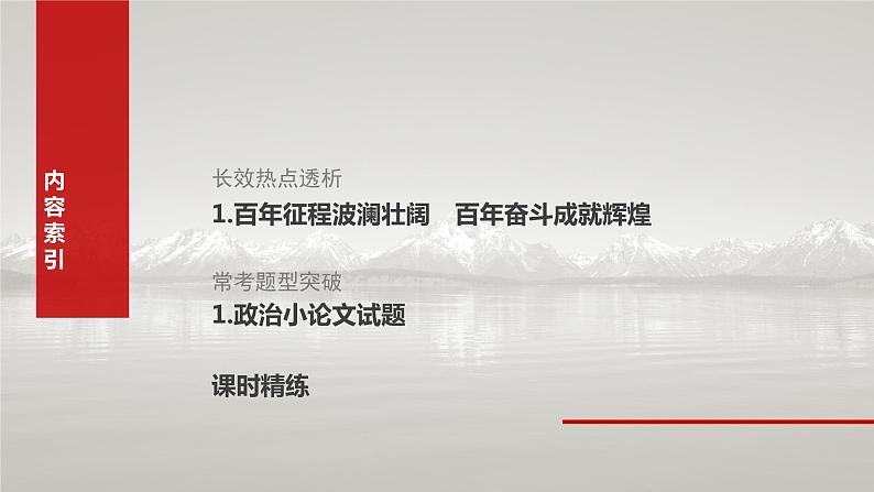 2024年高考政治一轮复习课件(部编版) 必修1 阶段提升复习1 中国特色社会主义: 这是一份2024年高考政治一轮复习课件(部编版) 必修1 阶段提升复习1 中国特色社会主义,共33页。PPT课件主要包含了高考政治一轮复习策略,长效热点透析,常考题型突破,政治小论文试题,解题流程等内容,欢迎下载使用。