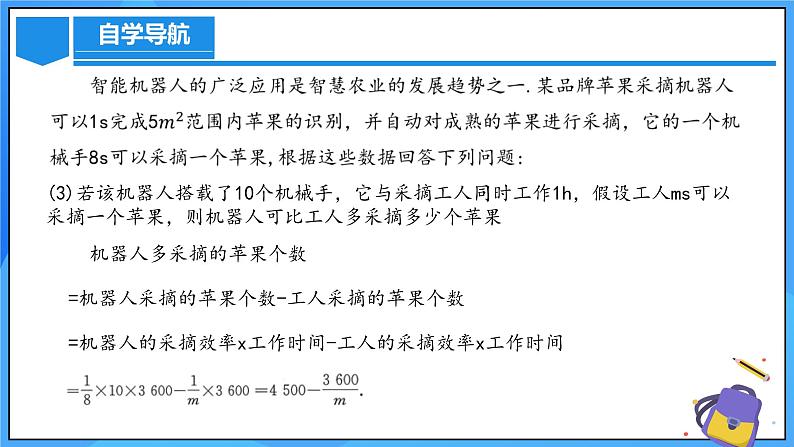 =机器人的采摘效率x工作时间-工人的采摘效率x工作时间