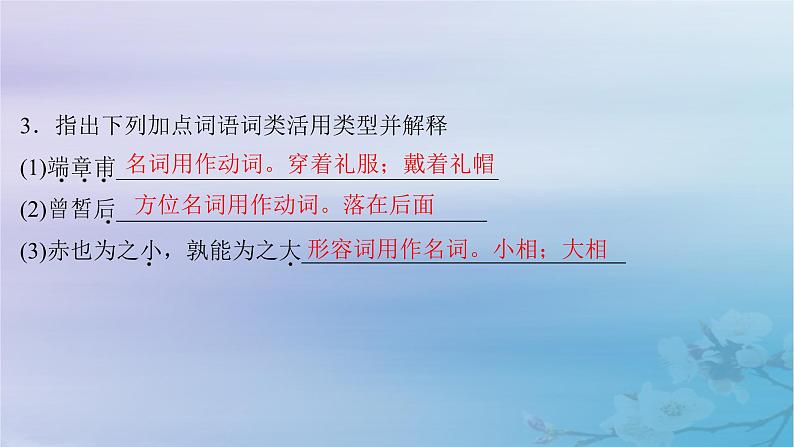 这是一份2025届高考语文一轮总复习第二部分古代诗文阅读板块一文言文阅读新教材文言文梳理选择性必修中册课件,共60页。PPT课件主要包含了知识广博长于记忆,指国家安定,指国家动荡,擅长外交辞令,应对的言辞,谋划计议,屈原列传,嫉妒屈原的才能,疲倦困苦,忧伤悲痛等内容,欢迎下载使用。