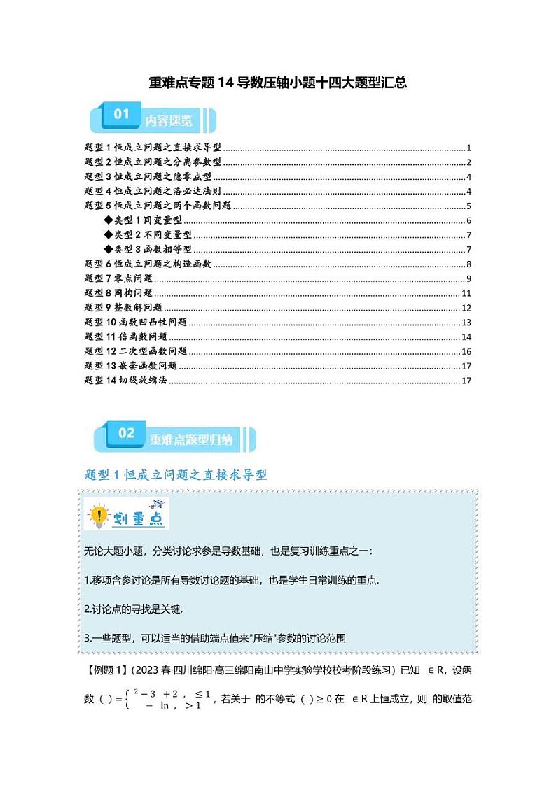 2025届一轮复习:高考数学重难点汇总重难点专题14 导数压轴小题十四大题型汇总