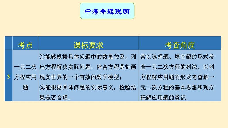 这是一份专题05 一元二次方程课件-数学中考一轮复习,共23页。PPT课件主要包含了一元二次方程,变化率等内容,欢迎下载使用。