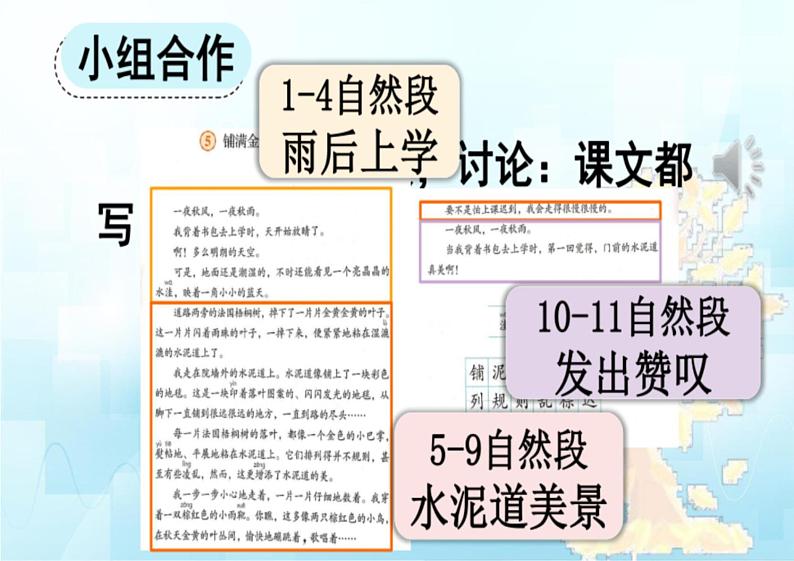 这是一份小学人教部编版铺满金色巴掌的水泥道多媒体教学ppt课件,共37页。