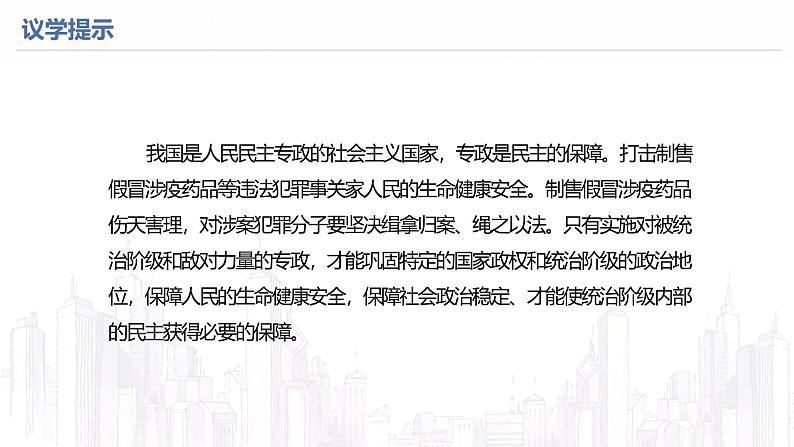 高中第二单元 人民当家作主第四课 人民民主专政的社会主义国家坚持人民民主专政课文课件ppt: 这是一份高中<a href="/zz/tb_c4003368_t3/?tag_id=26" target="_blank">第二单元 人民当家作主第四课 人民民主专政的社会主义国家坚持人民民主专政课文课件ppt</a>,共33页。PPT课件主要包含了学习目标,核心素养目标,子议题1,坚持民主与专政的统一,子议题2,人民民主专政,发扬社会主义民主,国家职能,对内职能,对外职能等内容,欢迎下载使用。
