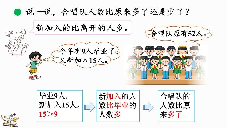(1)和同伴说一说,现在车上的人数多了还是少了?