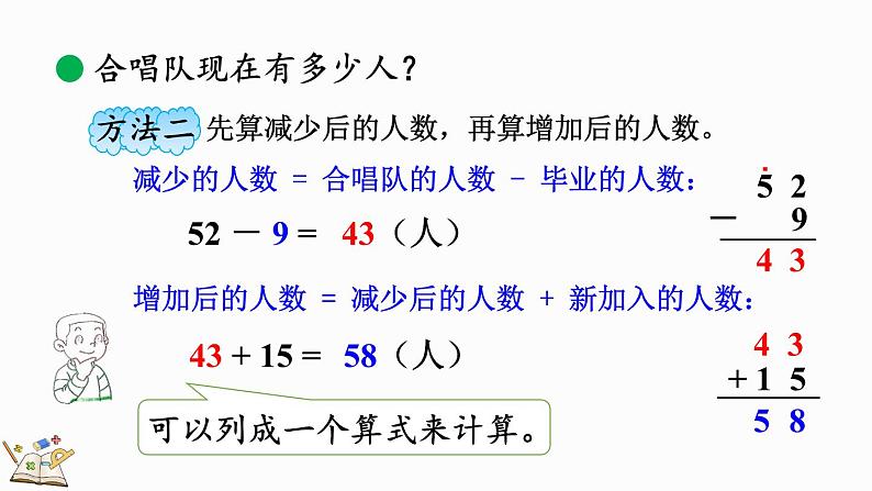 合唱队的人数 - 毕业的人数 + 新加入的人数: