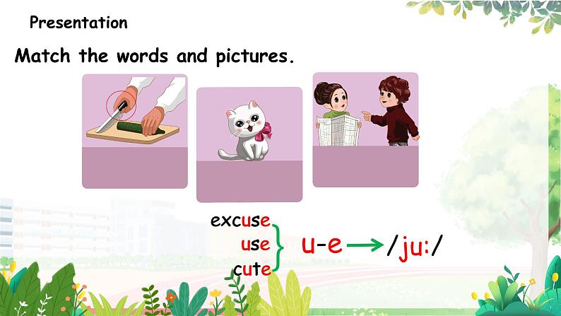 ( ) 1. A. cute B. cut C. use ( ) 2. A. tube B. up C. us ( ) 3. A. mum B. mule C. duck ( ) 4. A. excuse B. use C. bus