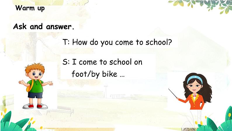 这是一份小学英语人教版 (PEP)六年级上册Unit 2 Ways to go to school Part A备课课件ppt,文件包含六上Unit2PartA第二课时pptx、六上Unit2PartA第二课时docx、第2课时doc、Let’stalkmp3、Let’strymp3、Mrsmp3、earlymp3、六上Unit2PartA第二课时mp3、Howdoyougettheremp4、Howdoyougotoschoolmp4、Let’schantmp4、Let’stalkmp4等12份课件配套教学资源,其中PPT共26页, 欢迎下载使用。