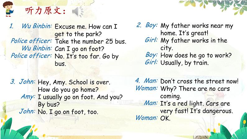 小学英语Unit 2 Ways to go to school Part B课文内容ppt课件