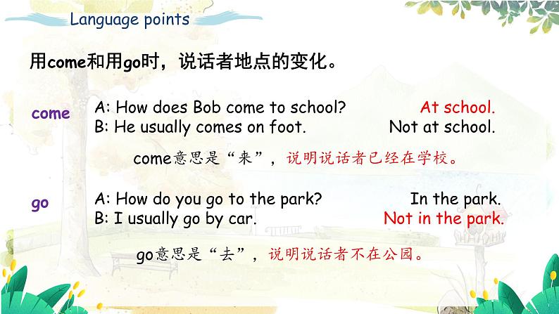 A: Hw d yu g t the park? In the park.B: I usually g by car. Nt in the park.
