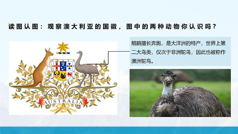 读图认图:观察澳大利亚的国徽,图中的两种动物你认识吗?