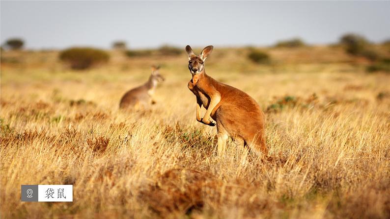袋鼠是澳大利亚独有的动物,澳大利亚的象征之一,是用两后足一起跳跃的最大的哺乳动物。