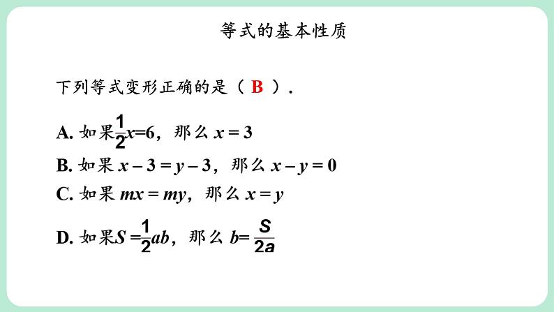 等式的两边都加(或减)同一个代数式,所得结果仍是等式. 等边的两边都乘同一个数(或除以同一个不为0的数),所得结果仍是等式.