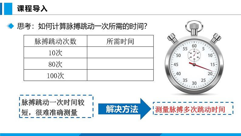 展开思考:如何计算脉搏跳动一次所需的时间?