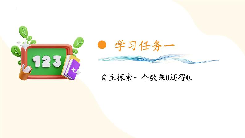 小学数学·三年级(上)·SJ第7课时 中间有0的三位数乘一位数经历笔算乘数中间有0的乘法过程,进一步提高估算和笔算的能力,发展相应的数感。理解一个数和0相乘得0的结论,学会计算乘数中间有0的乘法。感受数学与生活的联系,获得成功的体验,树立学习的信心。能够明确运算的意义,理解算法和算理之间的关系。乘数中间有0的乘法的笔算算理。掌握乘数中间有0的乘法笔算方法,能正确计算。160045240 18004204500400 × 4= 3× 600=15 × 3=70 × 6=3 × 80=900× 5=口算 19512101064 65 × 3=242 × 5=266 × 4= 6 5 × 3 2 4 2 × 5 2 6 6 × 4 1 9 51 2 1 01 0 6 4 1 2 2 1 1 1 2自主探索一个数乘0还得0.3只小猫一共钓了多少条鱼?3只小猫一共钓了多少条鱼?300条0条列式计算0×7=8×0=0×0=000探索中间有0的三位数乘一位数的计算方法体育馆一个看台有102个座位,4个这样的看台一共有多少个座位?从图中你能发现哪些数学信息?一个看台有102个座位有4个看台一共有多少个座位?一个看台有102个座位有4个看台一共有多少个座位?先说说你是怎么想的,再列式回答求一共多少个座位,就是求4个102是多少,用乘法计算。102×4=084答:4个看台一共有 个座位。408408个计算多位数乘一位数时要注意,乘数的中间有0,积的中间不一定有0。1.口算(P22.1)0×2=6×0=0×9=1×0=00002.先找出错在哪,再改正。 (P22.3)3051035308013. (P22.4)2×304=608309×5=1545603×3=18095×605=3025506×7=35428×206=16489×104=936207×9=18634.奶奶买了一根5米长的红丝绳编中国结。(1)编一个中国结要用红丝绳105厘米,编2个要用多少厘米?105×2=210(厘米)2101答:编2个要用210厘米。(2)编好2个中国结,这根红丝绳还剩多少厘米?还够编3个中国结吗?为什么?500−210=290(厘米)答:315厘米>290厘米,所以不够编 3个中国结。5米=500厘米105×3=315(厘米)拓展提升5. 妈妈买了3袋这样的红豆,一段时间后还剩638克,每千克红豆8元。问题:已经用去了多少克?如果我们继续研究,你想研究什么问题?405×3=1215(克)答:已经用去了577克。215111215−638=577(克)数学故事:关于“0”. 0的发明是一件不容易的事儿,在0发明前,我们的祖先计数的方法繁难而不完善,当采用阿拉伯数码而没有0这个符号时,为表示一个数,如二百零八,用打格的方法来区分 ,空白地方表示空位。 我国古代用算筹运算时怕数位发生错误,开始用方块儿代表空位。为书写方便,逐渐写成了0,在使用0后,我们运算才算完善。用一位数乘三位数的每一位,在与中间的0相乘时,如果没有进上来的数,这一位的积就是0,要在本位上写0占位;如果有进上来的数必须加上,在本位上写进上来的数。