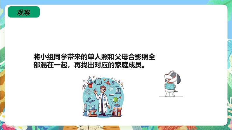 将小组同学带来的单人照和父母合影照全部混在一起,再找出对应的家庭成员。