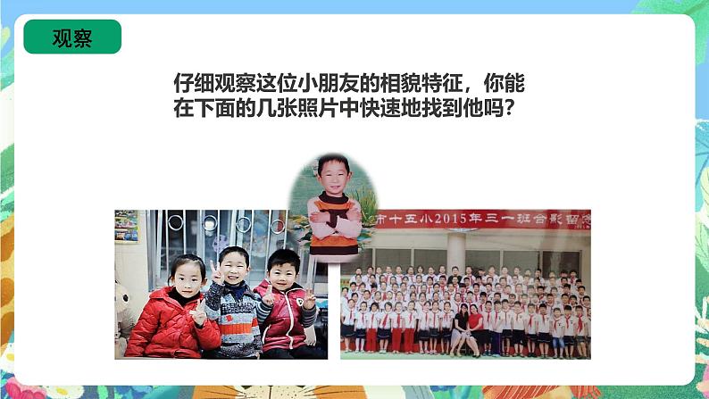 仔细观察这位小朋友的相貌特征,你能在下面的几张照片中快速地找到他吗?