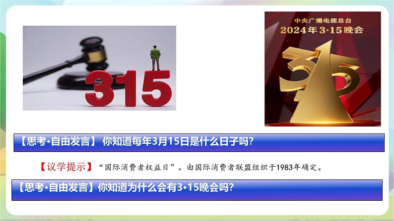 【议学提示】“国际消费者权益日”。由国际消费者联盟组织于1983年确定。