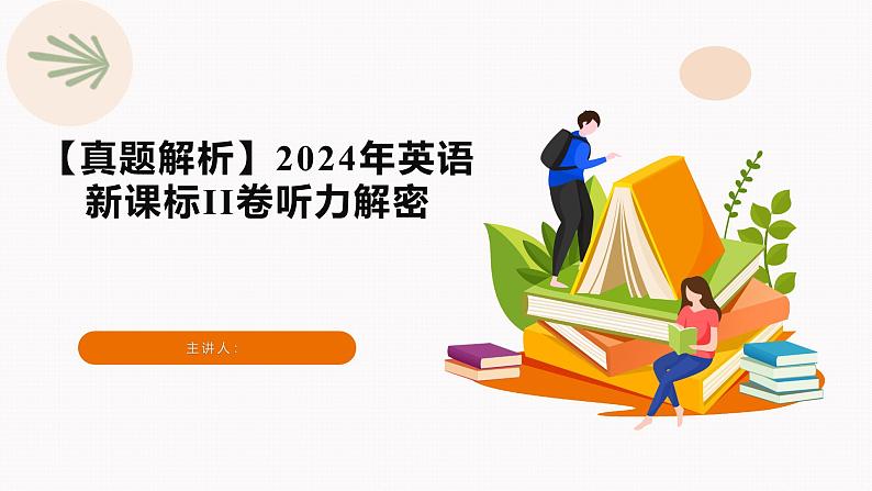 这是一份专题02 2024年新课标II卷高考听力(音频 试题 文本解密 精美课件)—备战2025高考英语听力专项,文件包含专题022024年新课标II卷高考听力精美课件pptx、专题022024年新高考II卷高考听力试题+答案+文本解密解析版docx、专题022024年新课标II卷高考听力音频mp3等3份课件配套教学资源,其中PPT共25页, 欢迎下载使用。