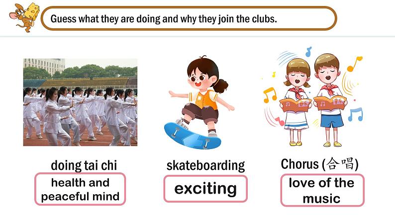 这是一份英语七年级上册(2024)Section A备课ppt课件,共29页。PPT课件主要包含了art club,drama club,exciting,can,can’t,sing well等内容,欢迎下载使用。