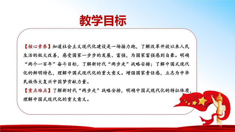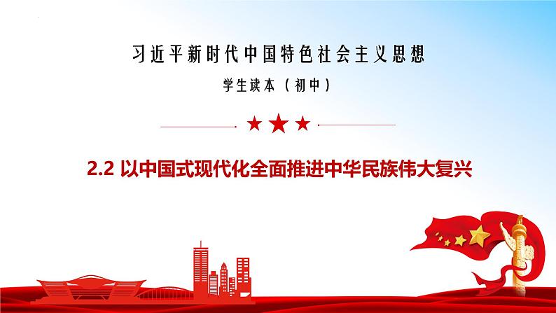这是一份初中政治 (道德与法治)以中国式现代化全面推进中华民族伟大复兴一等奖ppt课件,文件包含2023新版《习近平新时代中国特色社会主义思想》初中读本22以中国式现代化全面推进中华民族伟大复兴课件pptx、2023新版《习近平新时代中国特色社会主义思想》初中读本22以中国式现代化全面推进中华民族伟大复兴教案docx、三大件的转变mp4、以中国式现代化全面推进中华民族伟大复兴mp4、全面建成了小康社会mp4、本质要求mp4等6份课件配套教学资源,其中PPT共26页, 欢迎下载使用。
