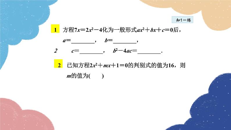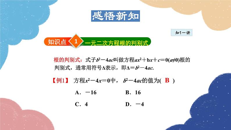 22.2.5 一元二次方程根的判别式 华师大版数学九年级上册课件