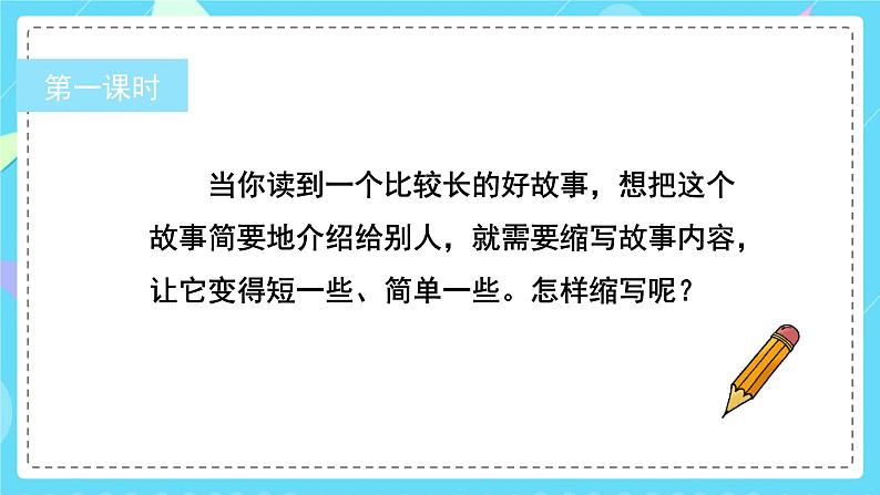 当你读到一个比较长的好故事,想把这个故事简要地介绍给别人,就需要缩写故事内容,让它变得短一些、简单一些。怎样缩写呢?