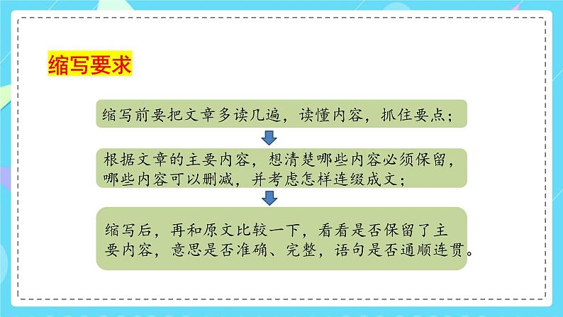 缩写前要把文章多读几遍,读懂内容,抓住要点;