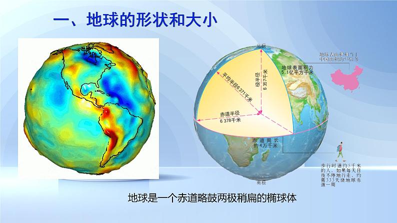 地球是一个赤道略鼓两极稍扁的椭球体