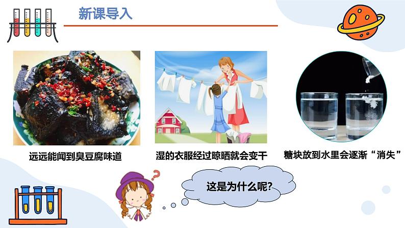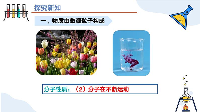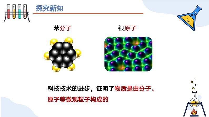 这是一份化学课题1 分子和原子精品ppt课件,共23页。PPT课件主要包含了新课导入,远远能闻到臭豆腐味道,这是为什么呢,探究新知,实验现象,银原子,苯分子,实验步骤,视频1+12,2分子在不断运动等内容,欢迎下载使用。