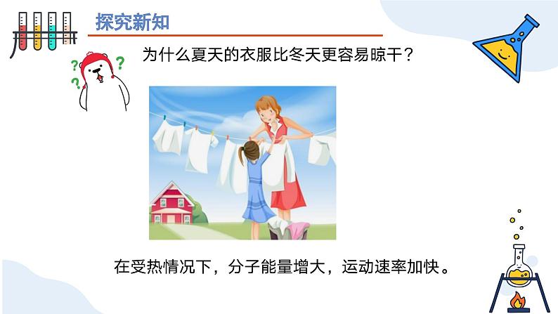 4.从分子的角度分析并解释下列问题。(1)水蒸发为水蒸气,所占体积变大。(2)墙内开花墙外可闻到花香。(3)香水、汽油要密闭保存。(4)湿衣服在阳光下比在阴凉处干得快。(5)6000L氧气在加压的情况下可装入容积为40L的钢瓶中。(6)混合物与纯净物有什么不同?