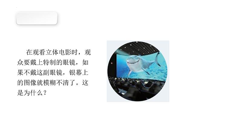 在观看立体电影时,观众要戴上特制的眼镜,如果不戴这副眼镜,银幕上的图像就模糊不清了。这是为什么?