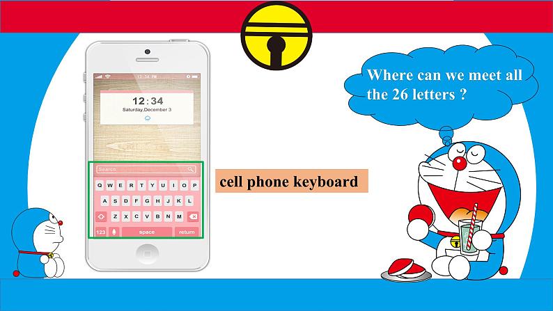 看看26个字母哪些包含哆啦A梦的口袋里装着音素?试着读出来吧!