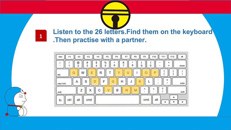 Listen t the 26 letters.Find them n the keybard .Then practise with a partner.